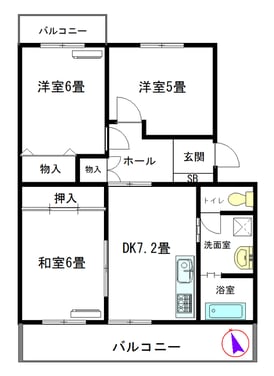 DK7.2畳・洋6畳・洋5畳・和室6畳 |